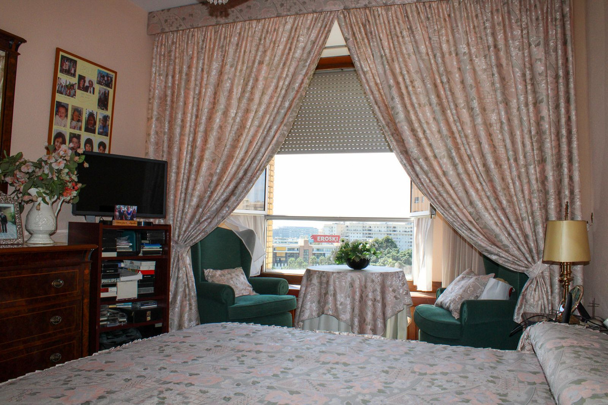 Fire rummelige soveværelser, tre badeværelser, en stor solrig terrasse med flot udsigt og plads i garagen. Lejligheden ligger på ottende sal i en velholdt bygning med elevator og reception med dørmand, beliggende i et sikkert og roligt område tæt på metroen og alle faciliteterne i den pulserende by Malaga.