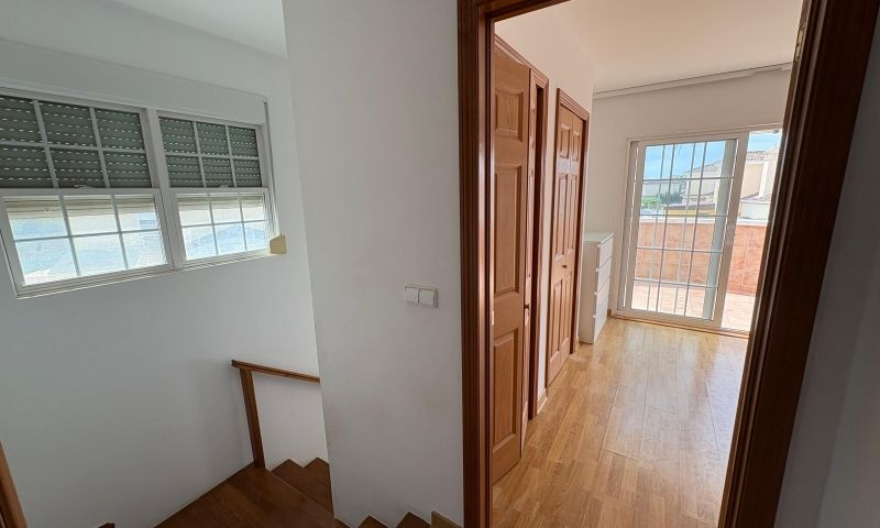 The house is built on 2 floors, has a very spacious living room, 50 m2 with an open French kitchen with window and exit to the laundry room and plot, spacious bathroom and two double bedrooms. On the upper floor there are two double rooms with bathrooms, one of them with a 23 m2 terrace. It has a 500 m2 plot with a 5x3 pool. Located next to a green area of trees and path.
