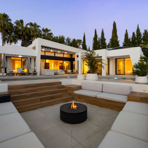 Nestled in the prestigious enclave of La Cerquilla, Villa La Cerquilla is a sanctuary of contemporary luxury surrounded by the beauty of Marbella's Golf Valley. Behind its private gates, the residence opens onto five generous double bedrooms, including a refined master suite with its own bathroom. For greater versatility, a separate guest or staff apartment and a dedicated service room provide comfort and privacy for every lifestyle.