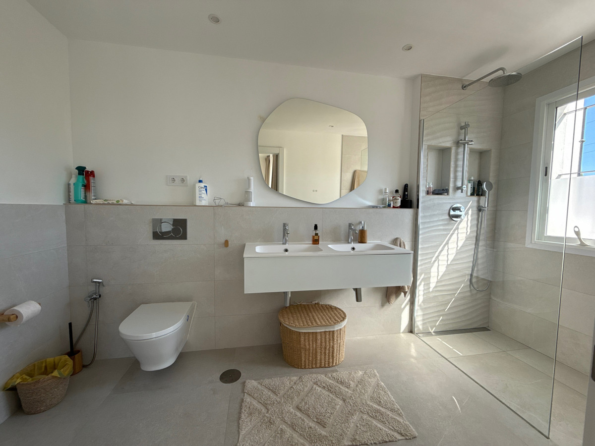 The three generously sized bedrooms come with ample storage and en-suite bathrooms, making this home ideal for families or those who value space and comfort. The master suite opens to a private terrace with stunning views.