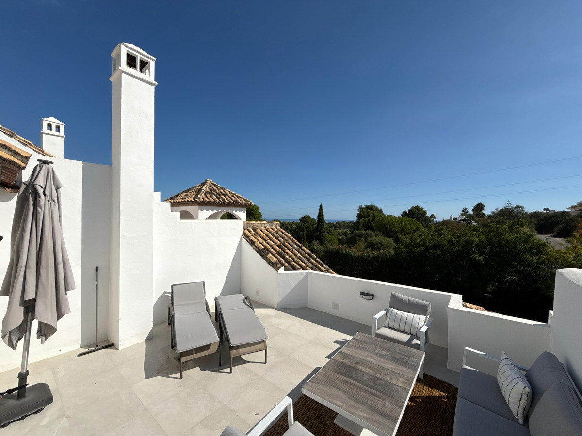 Presenting a beautifully renovated 3-bedroom, 3.5-bathroom townhouse in one of Marbella's most sought-after communities, nestled front-line to the prestigious Aloha Golf Club in the heart of Nueva Andalucía.