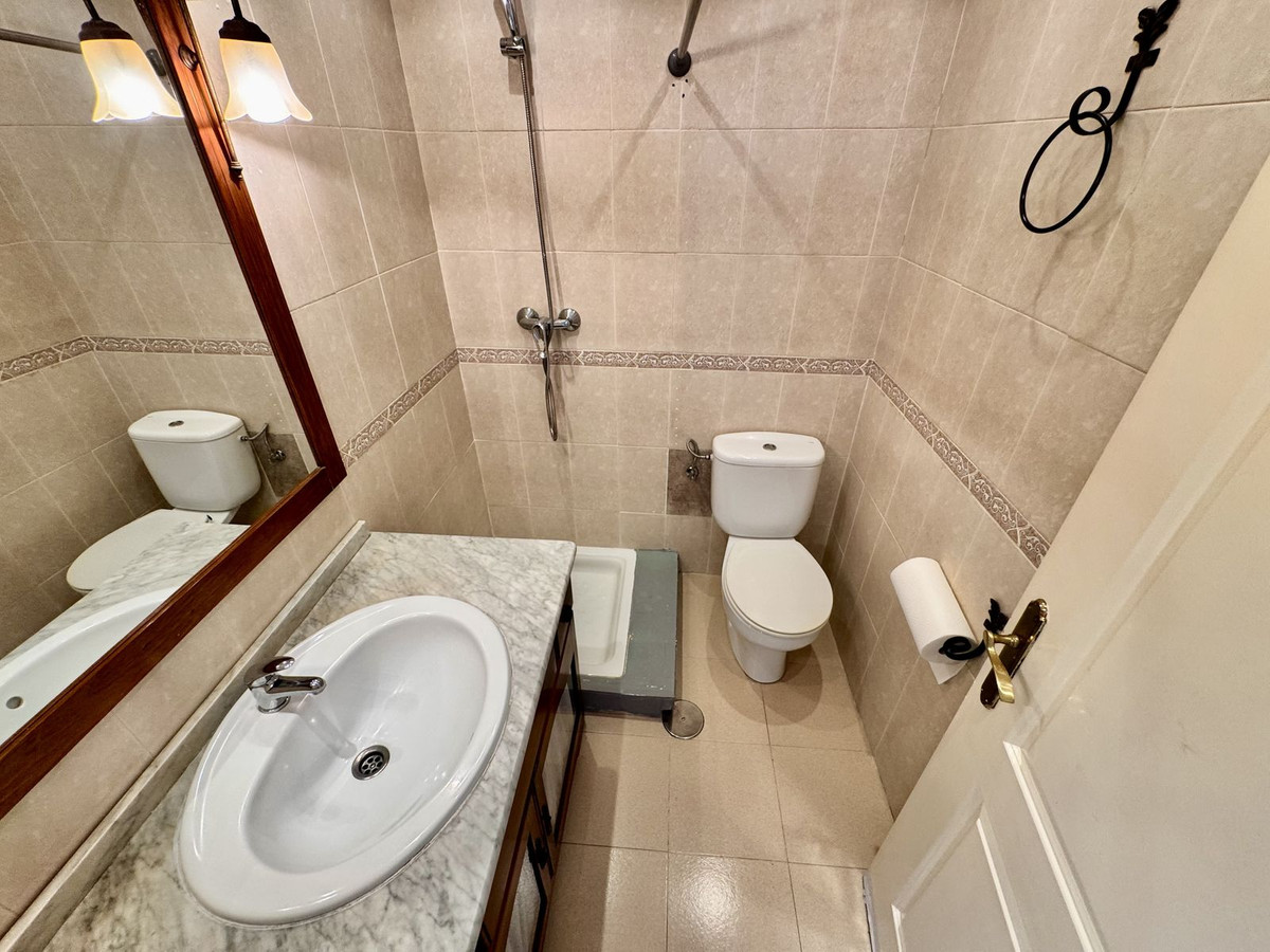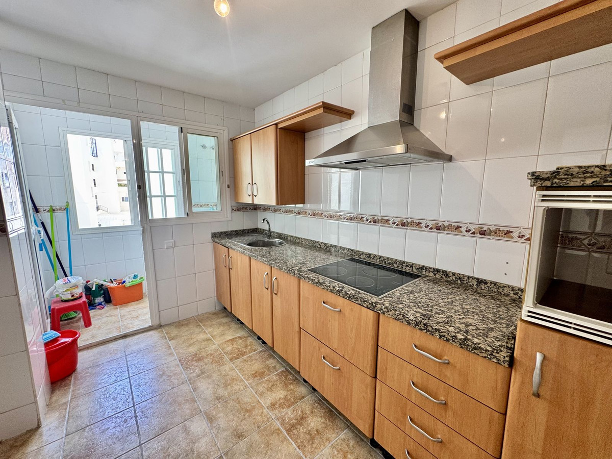 The interior layout includes two bedrooms, two full bathrooms, a bright and spacious living-dining room, and a large independent kitchen with well-maintained furniture. All windows are Climalit double glazing, ensuring improved thermal and acoustic insulation. In addition, the property benefits from excellent sun orientation, providing natural light throughout most of the day.
