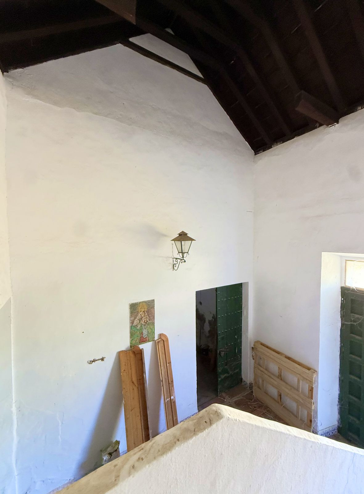 Inside, the property comprises three independent apartments, each with its own entrance from the courtyard, living room with fireplace, kitchen, bedrooms, and bathroom. There are also four large open-plan spaces with impressive wooden ceilings and heights ranging from 6.5 to 7.2 meters, creating a sense of grandeur and unmistakable architectural character.