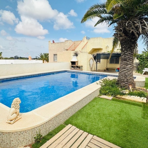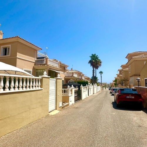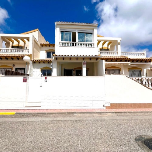 Completely renovated townhouse located in the quiet community of Los Naranjos, in Los Altos. The home has been completely renovated and is in impeccable condition, ready to move into. With a constructed area of 83 m2, it consists of three bedrooms and two full bathrooms, a living-dining room, a separate kitchen, and a covered front porch. The kitchen is equipped with all modern appliances, along with a laundry area. The home is spread over two floors and has a functional and modern design. Access to the home is via a private garden. Upstairs are two large double bedrooms, both with wardrobes, and a second full bathroom with a bathtub. The master bedroom faces south, providing natural light throughout the day. Air conditioning is installed in every room. It is being sold fully furnished, with quality furniture and everything necessary to move into (except personal belongings and decorative items). The residential complex offers a beautiful communal pool, and the home is located on a very quiet street with easy parking and a pleasant setting. The Consum supermarket and several restaurants are just 400 meters away, and the Punta Marina shopping center is a 15-minute walk away. Punta Prima Beach is 2 km away.