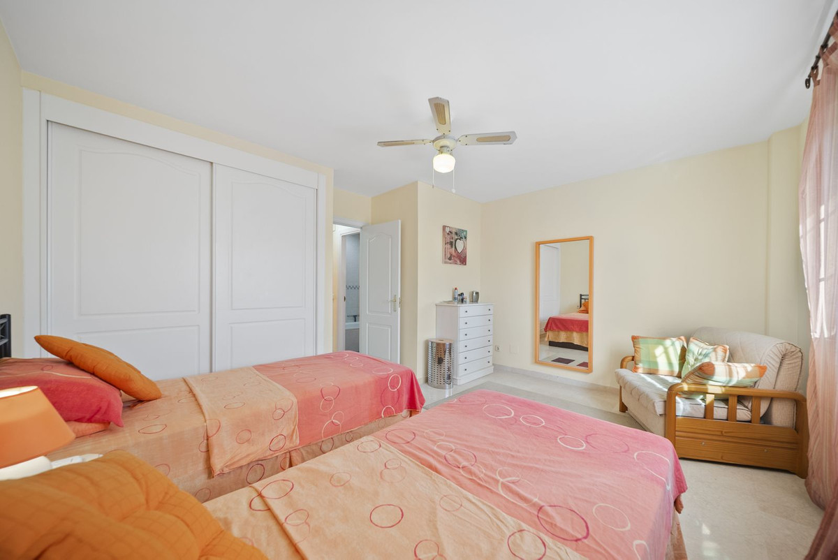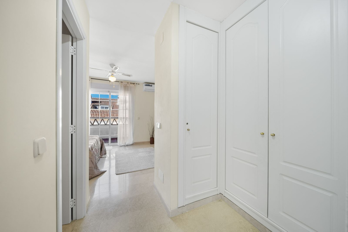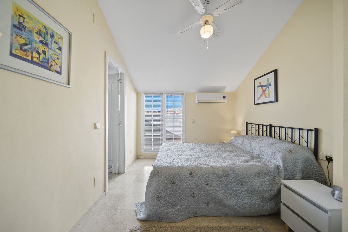 A private top-floor retreat featuring fitted wardrobes, an en-suite bathroom, and double doors opening onto a spacious terrace — ideal for enjoying the evening sun and panoramic sea and mountain views.