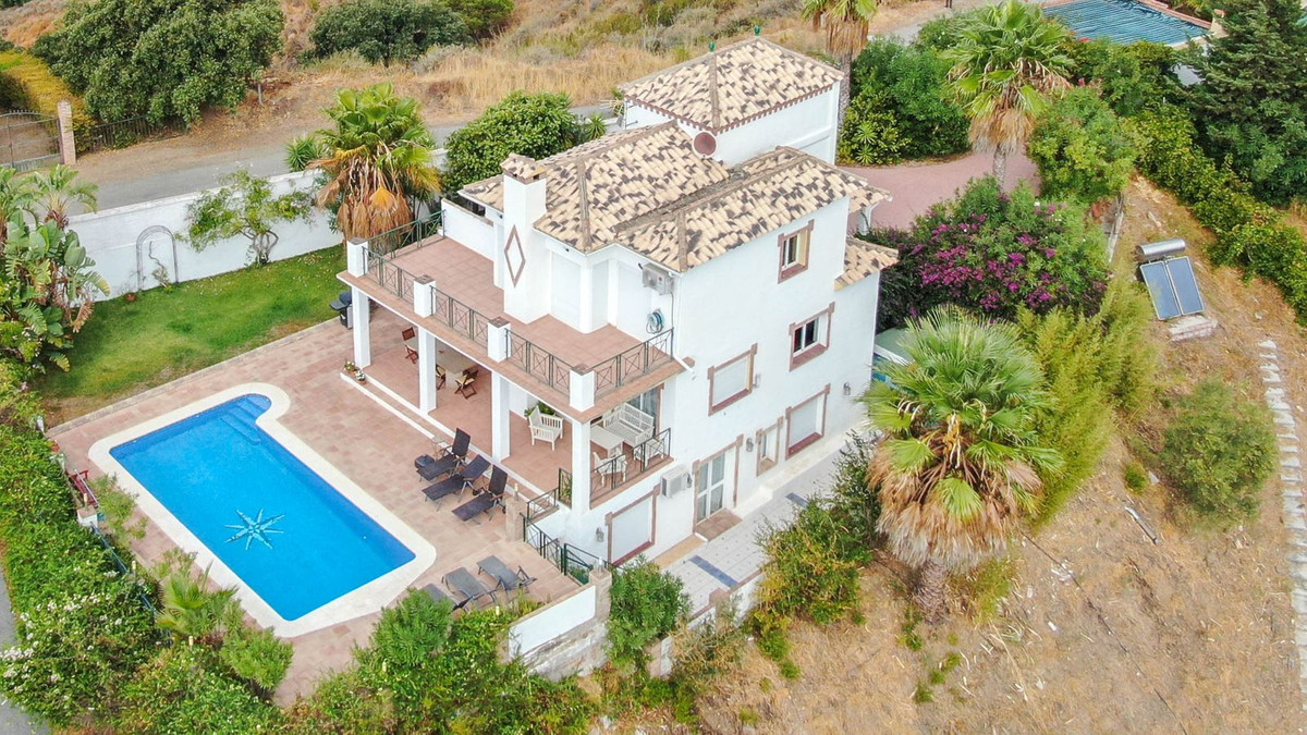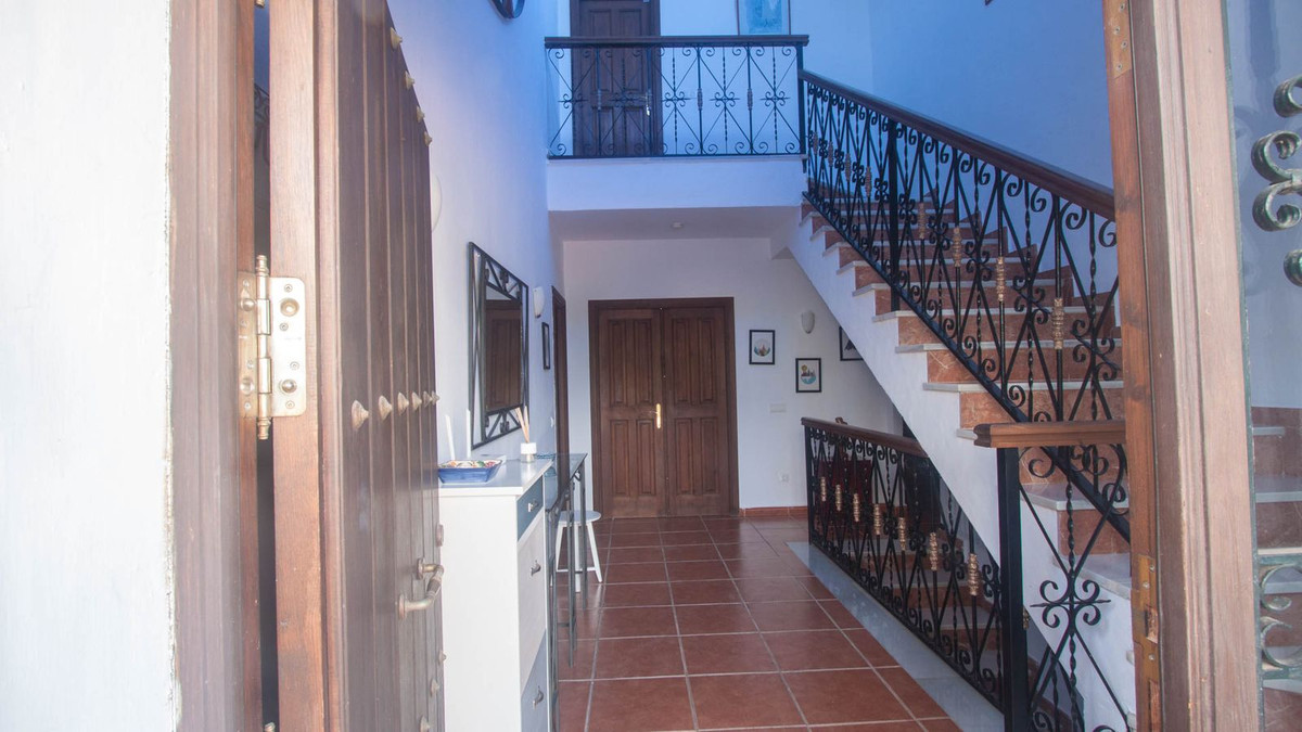 This Andalusian-style villa, featuring rustic touches and elegant architectural design, is built across three levels, with access through an electric gate that opens onto a spacious parking area.