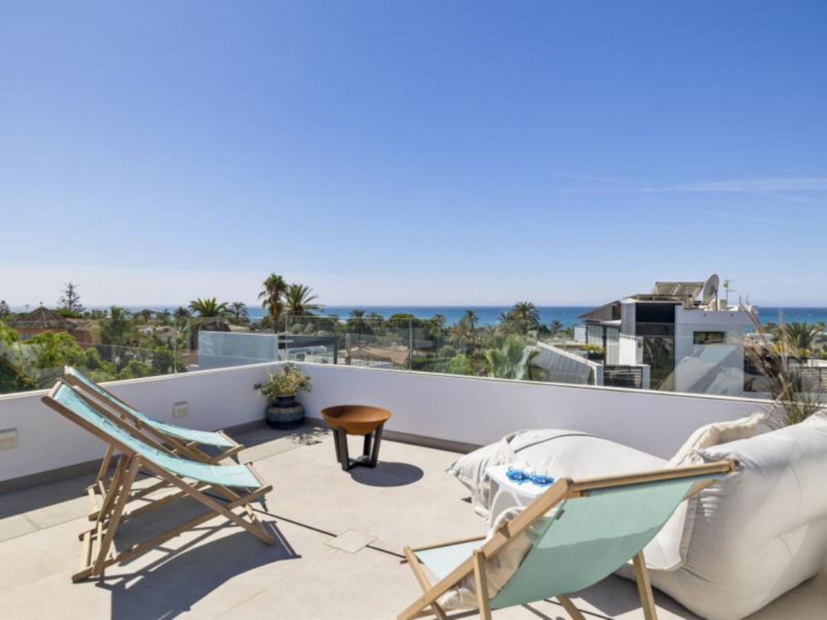 It features an attractive private pool and is located a short walk from the beach, just a 5-minute drive from the center of Marbella, and close to all amenities.