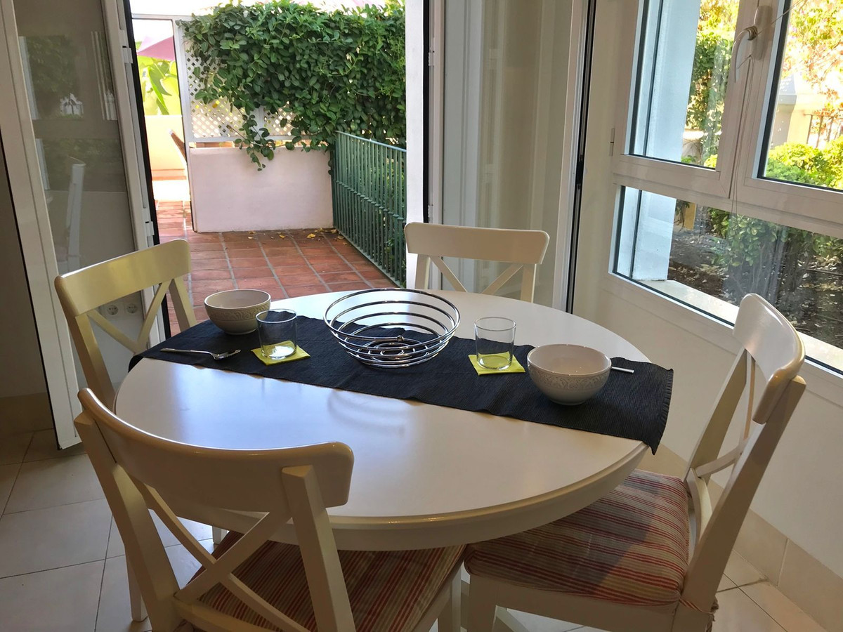 The fully equipped kitchen includes a breakfast table and opens directly onto a charming side terrace, perfect for morning coffee or casual dining. It also connects to a separate laundry room, discreetly integrated into the layout. Additional storage space is located in the hallway for maximum practicality.