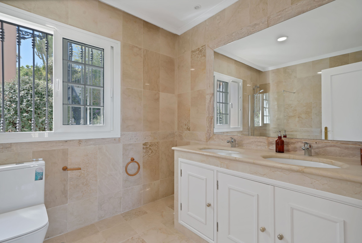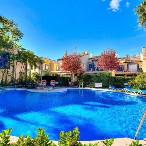 Exquisitely Renovated Townhouse with Sun-Drenched Terrace and Plunge Pool in Aldea DoradaThis beautifully renovated townhouse is located in the exclusive gated community of Aldea Dorada, in the sought after area of La Cerquilla, Nueva Andalucía. Completely refurbished to the highest standards, the property has been redesigned from the ground up, including plumbing, electrics, air conditioning, flooring and layout, offering a truly turnkey home of exceptional quality.The house is distributed across two levels. On the main floor, a brand new open plan kitchen with top of the range appliances connects seamlessly to the living area with a travertine marble fireplace and dining space. Large glass doors open onto a sunny terrace with a barbecue area and a private plunge pool, ideal for outdoor entertaining. This level also offers a spacious en suite bedroom and a guest powder room.The lower level comprises three further bedrooms and two bathrooms, one of them en suite with a walk in wardrobe. In addition, there is a large hallway with a cosy reading corner, a utility and storage room, and a smaller room currently fitted as a home office with a sofa bed. All bedrooms benefit from split air conditioning, excellent natural light and wonderful open views.The property includes a private covered garage space of nearly eighteen square metres and an additional storage room of almost five square metres, both conveniently located.In terms of dimensions, the main floor offers 97.95 square metres plus a terrace of 44.67 square metres with a pool of 6.61 square metres. The lower floor provides 144.13 square metres, bringing the total built area to 242.08 square metres plus the terrace.The abbreviated information document is available to you. Expenses: Taxes (ITP or VAT+AJD) + Notarial and registration expenses. ERE