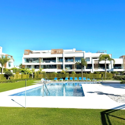 This stunning ground-floor apartment in Los Miradores del Sol Phase I perfectly combines contemporary luxury with Mediterranean indoor-outdoor living on Estepona's exclusive New Golden Mile. Offering 92 m² of elegant interior space and an impressive 84 m² of private terraces and gardens, it's ideally located just a short walk from the beach, shops, and restaurants.