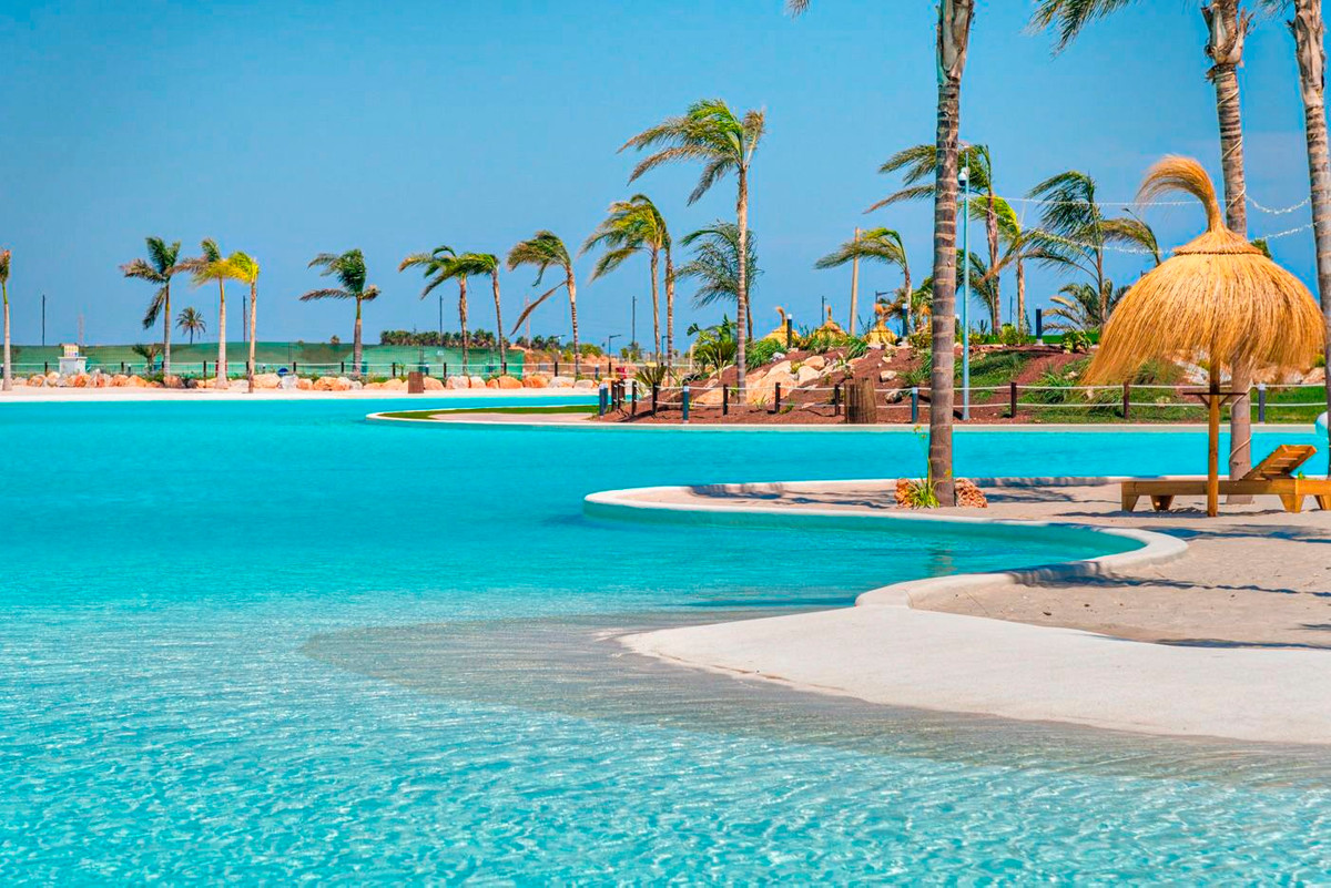 The residential complex itself is a truly unique setting, built around a spectacular turquoise artificial lake, surrounded by private beaches, lush green areas, sports facilities, a mini golf course, and a modern clubhouse with restaurant and bar.