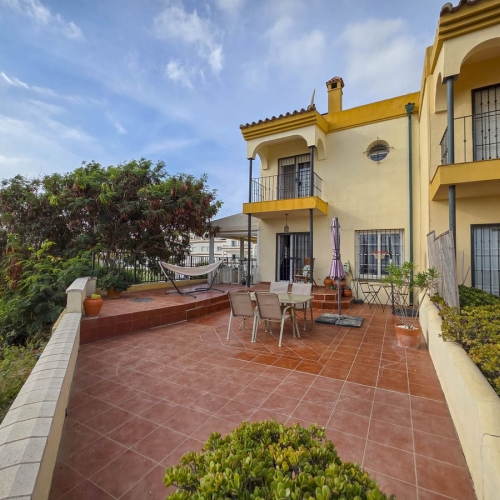 Townhouse in Bahia de Las Rocas, two minutes from Sotogrande, with two bedrooms with two en suite bathrooms (one with Jacuzzi) and a guest toilet. Spacious living room with access to the terrace overlooking the sea, Gibraltar and African coast. This townhouse has three floors and a basement that can be converted into a bedroom, game room, etc. ground floor with living room, fully equipped kitchen and guest bathroom, first floor with two bedrooms and access to a large solarium with stunning views. The property has fitted wardrobes, hot / cold air conditioning and carport. The urbanization is gated and has beautiful gardens and pools for adults and children.