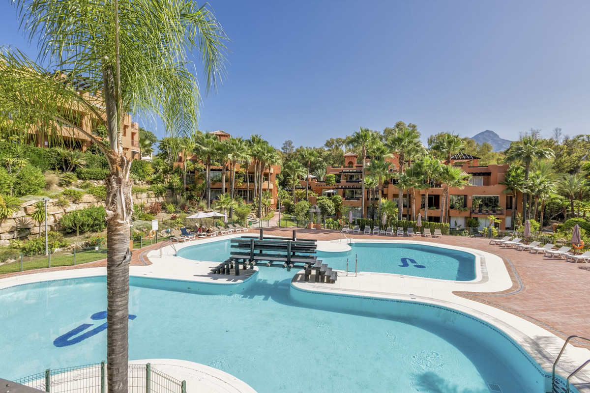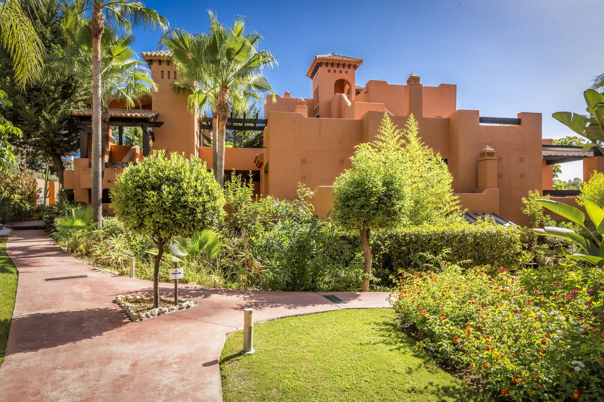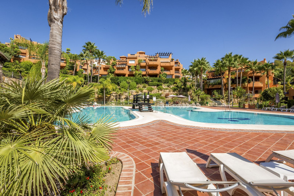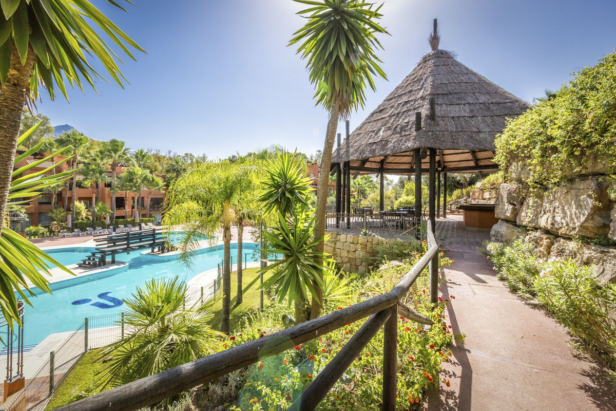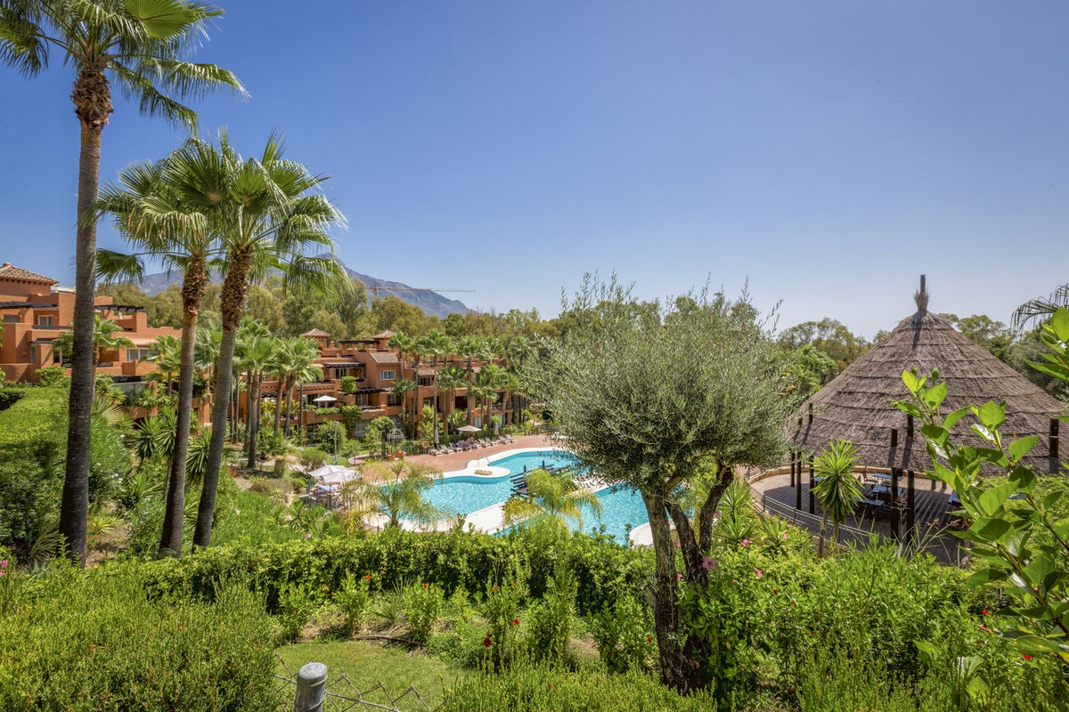 Set in one of Nueva Andalucia's green communities with tropical gardens, a lake, and two pools, this southeast-facing ground-floor apartment is made for easy indoor-outdoor living.