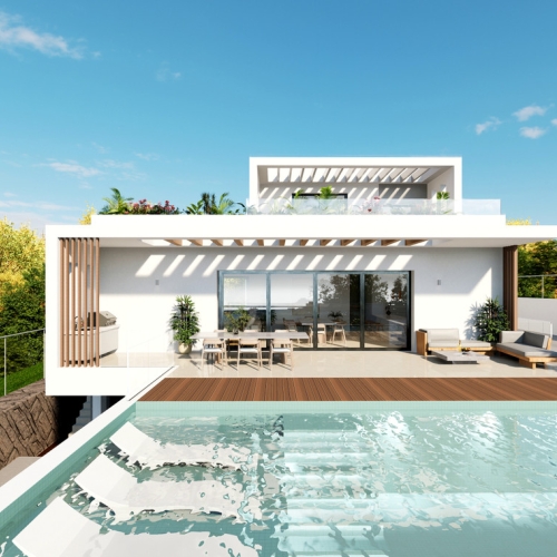 Denne moderne og rummelige villa er på én etage, med et bygget areal på 200 m² plus terrasse og et stort privat parkeringsområde. De store energieffektive vinduer giver dig mulighed for at nyde den fantastiske udsigt over golfbanen og de omkringliggende områder, samtidig med at alle soveværelser og stuen i åben plan er fyldt med naturligt lys. Værelserne fører direkte ud på terrassen, hvor du kan nyde den landskabelige have og din private swimmingpool.