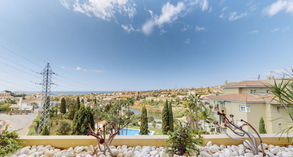 Spectacular apartment with golf and ocean views, located 2 minutes from the Miraflores clubhouse. It features a large terrace, two bedrooms and two bathrooms, an open-plan kitchen, and is sold with a parking space and storage room. The complex features two communal pools and gardens.