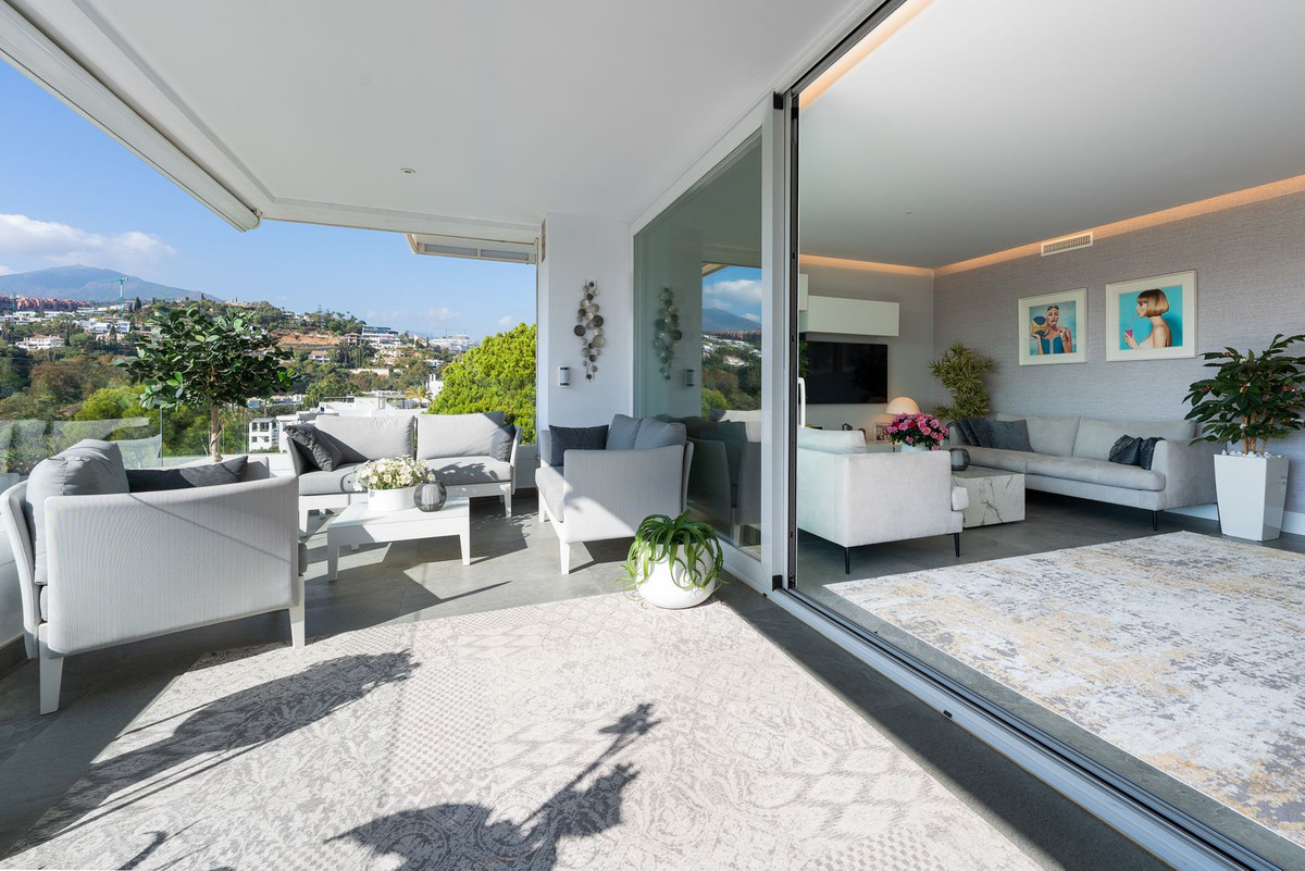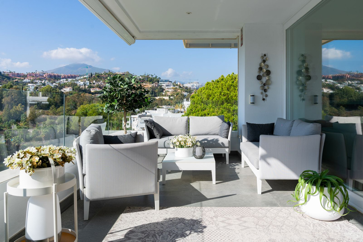 The exclusive Urbanización Le Caprice in the coveted La Quinta area of Benahavís offers an elegant apartment (built in 2020), which combines modern design, high-quality materials and Mediterranean charm into a stylish residential concept.
