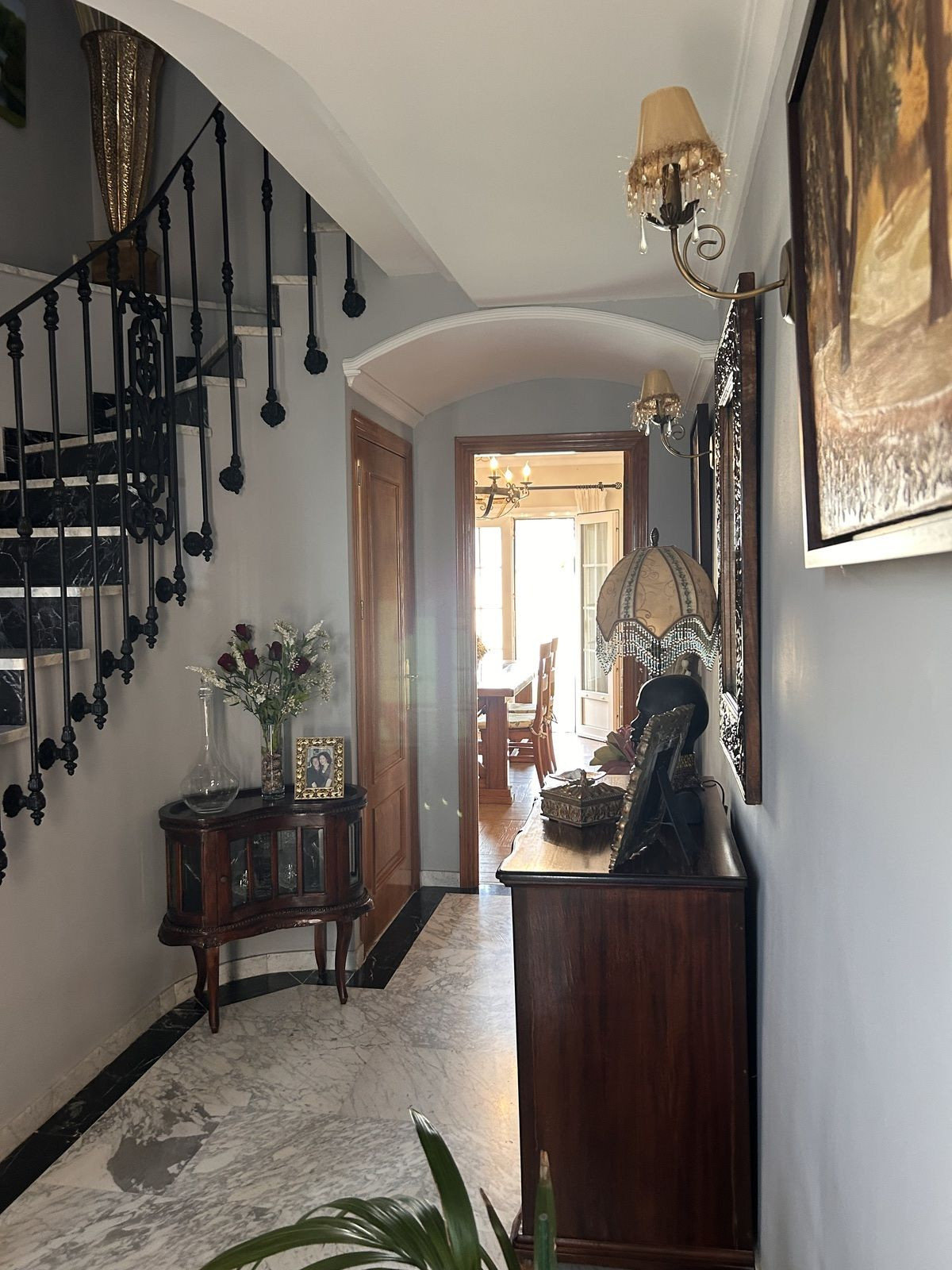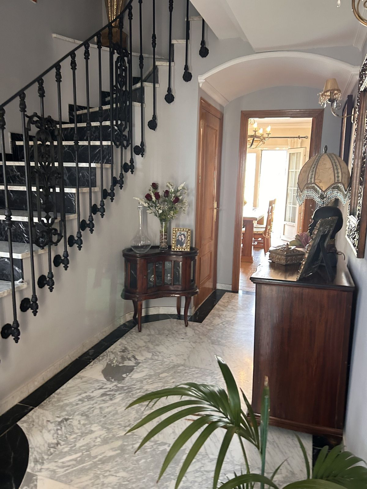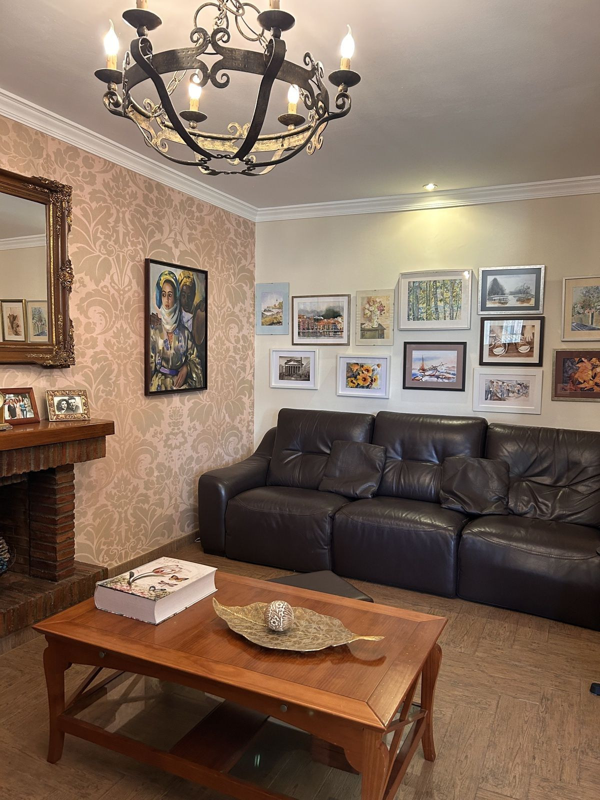 Elegant entrance hall, separate dining room, fully equipped kitchen, cozy living room with fireplace, additional guest lounge, laundry area, guest toilet, and private garage.