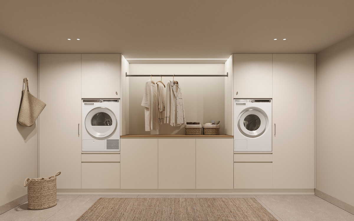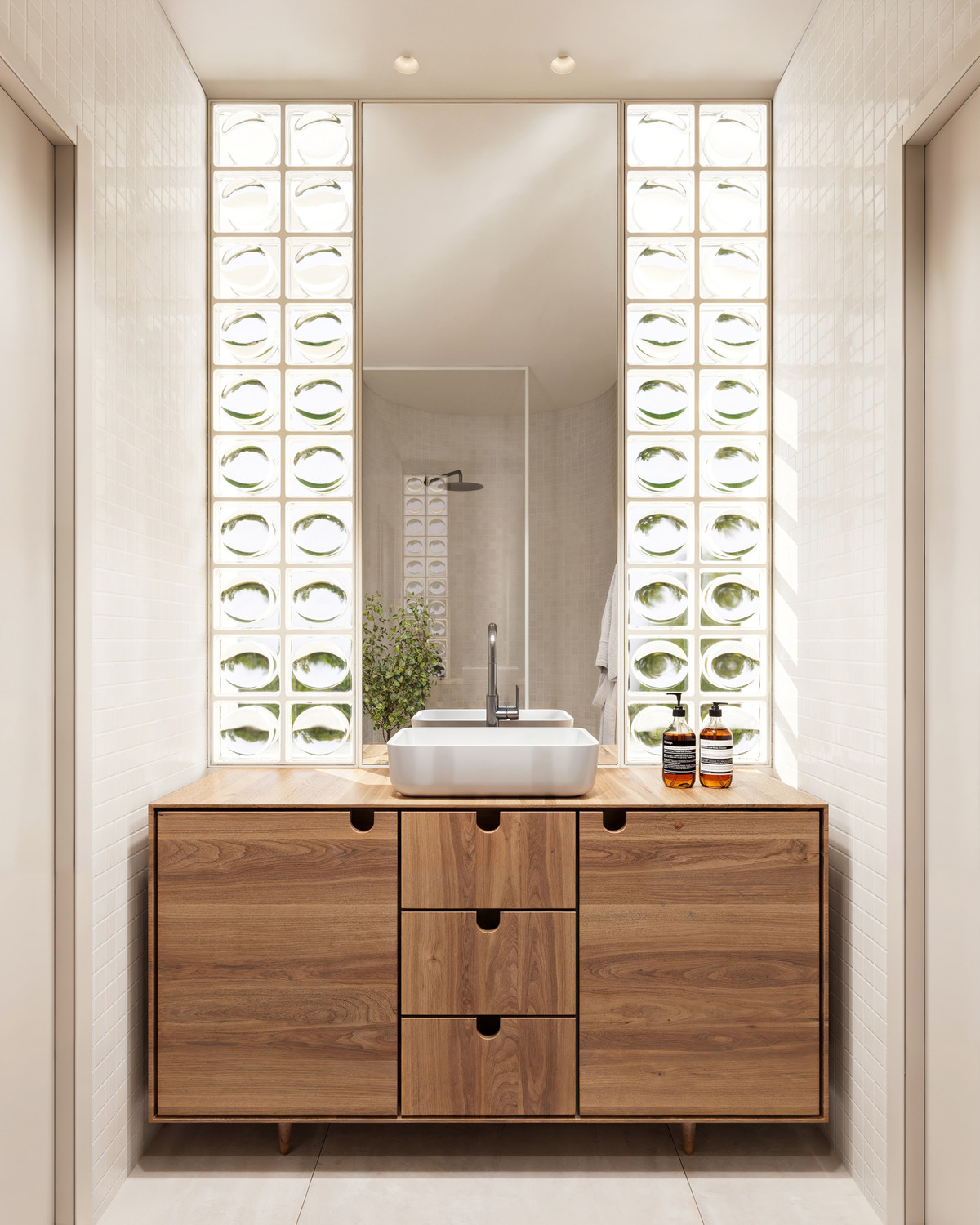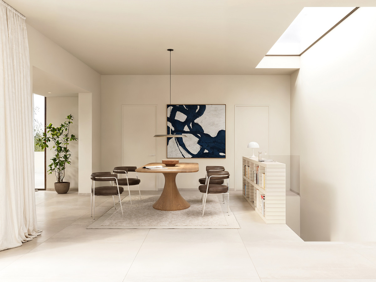 Med bløde kurver, naturlige teksturer og en varm palet af beige, terracotta, olivengrøn og hvid, er hvert rum designet til at skabe ro, skønhed og tidløs stil.