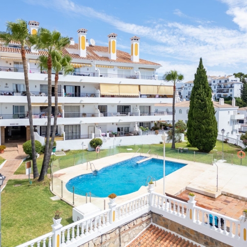 Impeccable, sydvendt toværelses lejlighed, beliggende i det gated fællesskab af Terrazas del Sol, en smukt vedligeholdt kompleks i den højere del af Riviera del Sol. Beboere har adgang til en stor fælles swimmingpool og frodig anlagt have. Kun en halv times kørsel fra Malaga lufthavn, med et busstoppested i nærheden plus ejendommen er også tæt på tennisbaner, golfbaner, restauranter og butikker. Ejendommen er fuldstændig renoveret og designet til moderne stue med en lys åben plan stue og køkken; mastersuite; gust soveværelse; gæste badeværelse; og en privat terrasse med fantastisk panoramaudsigt over havet; perfekt til afslappende og se solnedgangen. Andre funktioner omfatter en helt ny AC enhed, privat parkeringsplads og vaskeri.