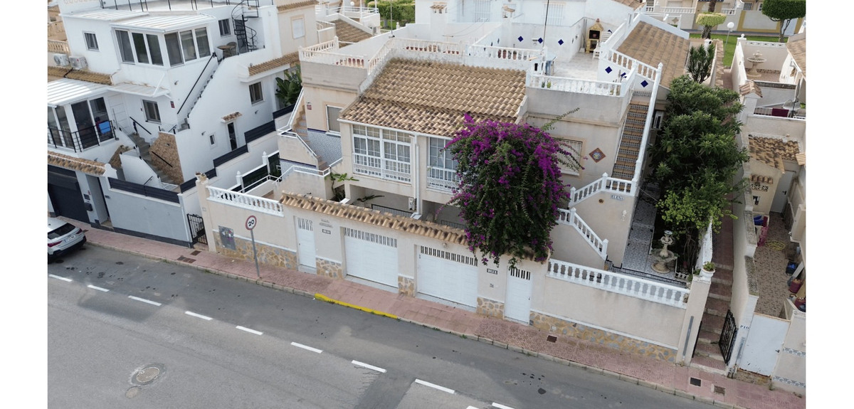 Discover this charming townhouse located in the popular residential area of Los Altos, just a short drive from the beaches of Punta Prima and Playa Flamenca.The property offers 3 bedrooms and 2 bathrooms, a private garage, and a large rooftop solarium with a barbecue area – perfect for enjoying the Mediterranean sun.