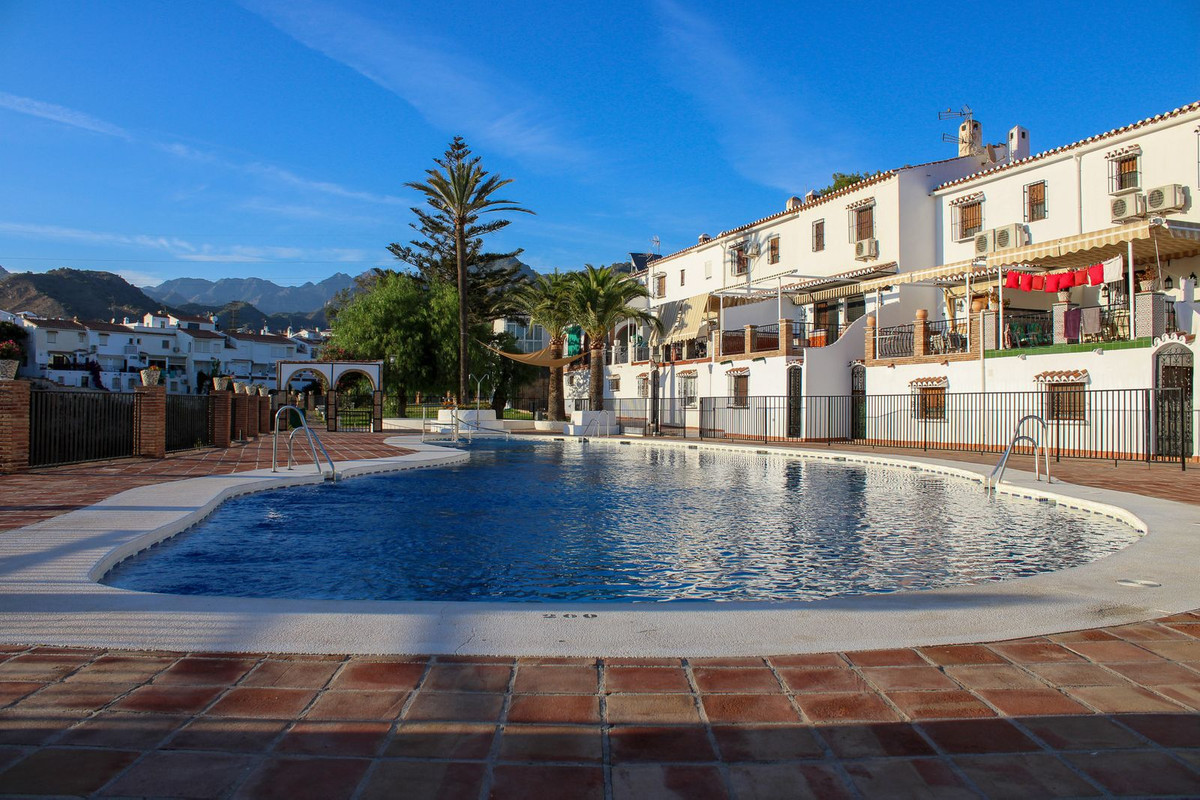 Velholdt rækkehus i urbanisationen Almijara 1 i Nerja, med 3 terrasser, 3 soveværelser, 1 badeværelse og et toilet. Der er en fælles pool i området, det nærmeste supermarked ligger kun 5 minutters gang væk. Det tager 15 minutter at komme til Playa Burriana og 20 minutter at komme til Balcon de Europa. Huset sælges fuldt møbleret, bare medbring dine tasker og flyt ind.