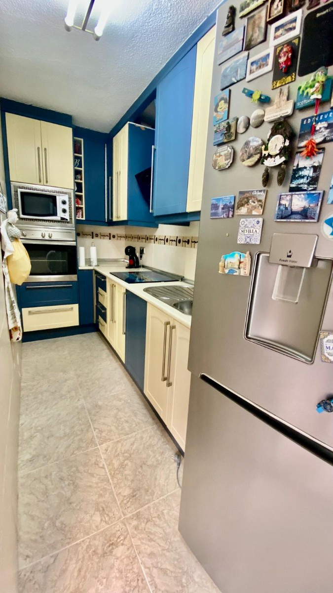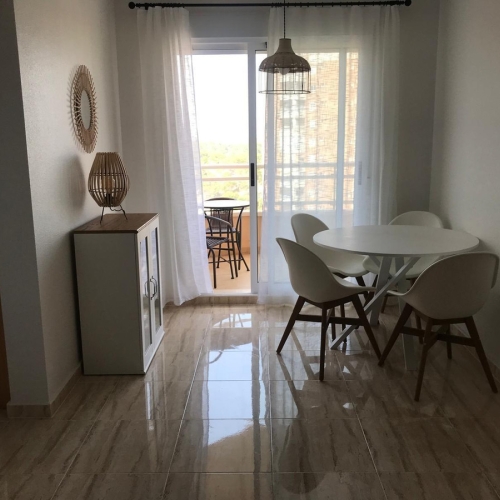 The property features 2 bedrooms with fitted wardrobes, 1 full bathroom with bathtub, a separate kitchen with utility room, and a bright living-dining room with access to a covered terrace, perfect to enjoy the beautiful sea views.