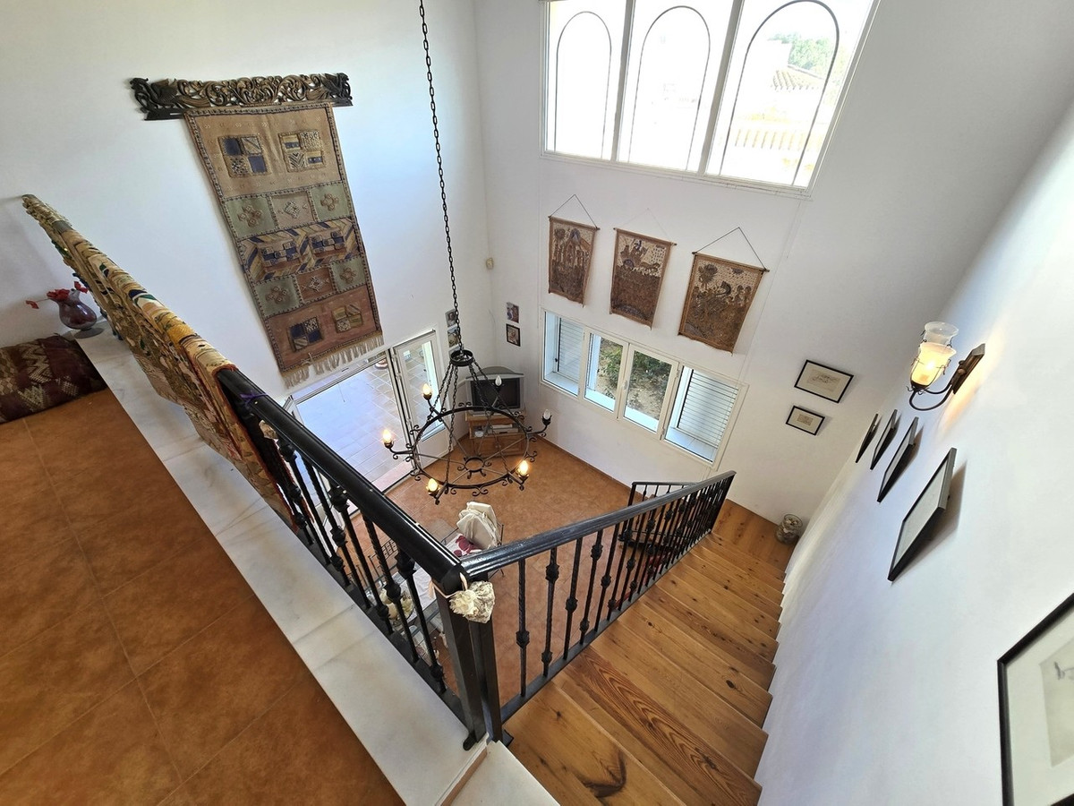 Via the lounge, a wrought iron and wood staircase leads to a beautiful upper-level lounge area – a perfect space for relaxing.