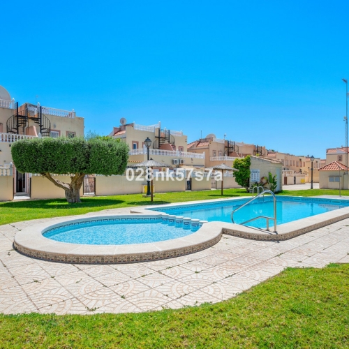 This is a fantastic south facing tonwhouse in La Regia which is a 10 minute walk to La Zenia and a little less to the Cabo Roig strip, the garden is south facing with sun all day and the property has a sun room for the winter months. The property has a lovely lounge with an american open plan kitchen with a lovely dining area to the rear and the downstairs also has a WC toilet. The first floor has two double bedrooms and a full family bathroom with a walk in shower and off the main bedroom you have a decent size balcony. This townhouse is in a fantastic location and is walking distance to Zenia Boulevard and Cabo Roig strip and also Cabo Roig beach. The Property is also part of a beautiful community with a lovely pool area and gardens.