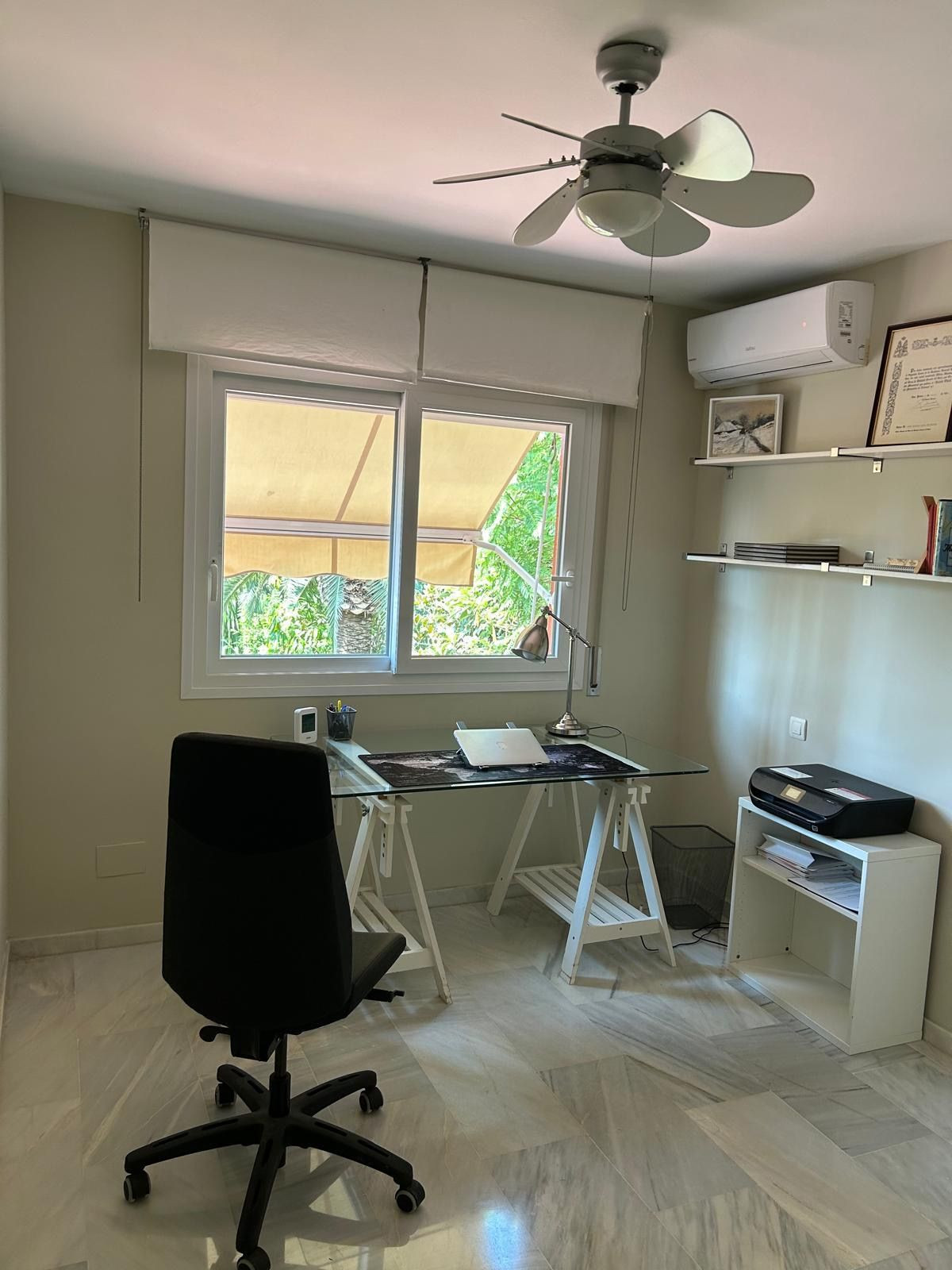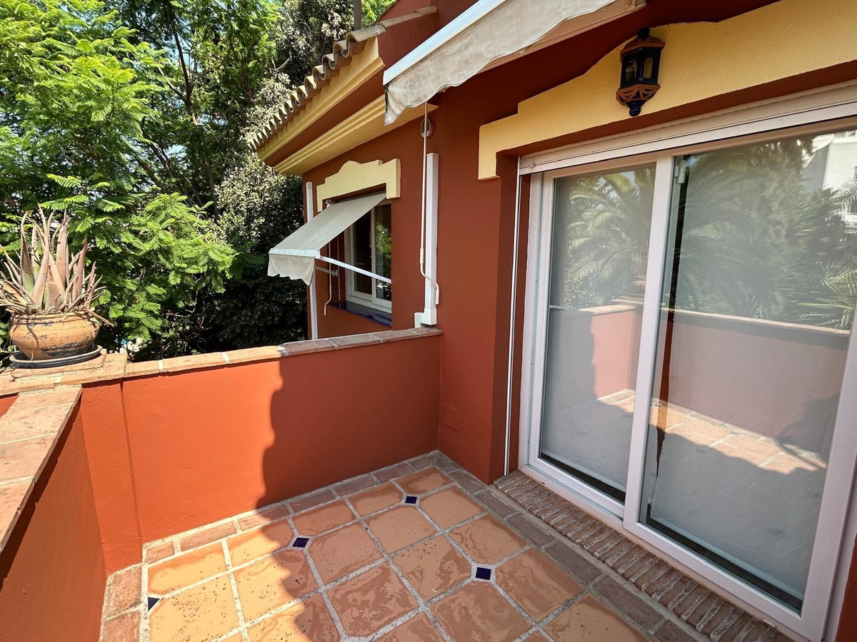 Spectacular corner townhouse in Lomas de Monte Biarritz, between Marbella & Estepona. Just 2 km from the beach and San Pedro de Alcántara, this 203 m² home sits on a 423 m² plot with a private tropical garden. Features include a bright living room with garden access, renovated premium kitchen, 4 bedrooms, 3 bathrooms, and a large solarium. Extras: Kommerling windows, photovoltaic solar panels (warranty until 2029), communal pool & gardens. A private retreat in one of the Costa del Sol's most sought-after areas.