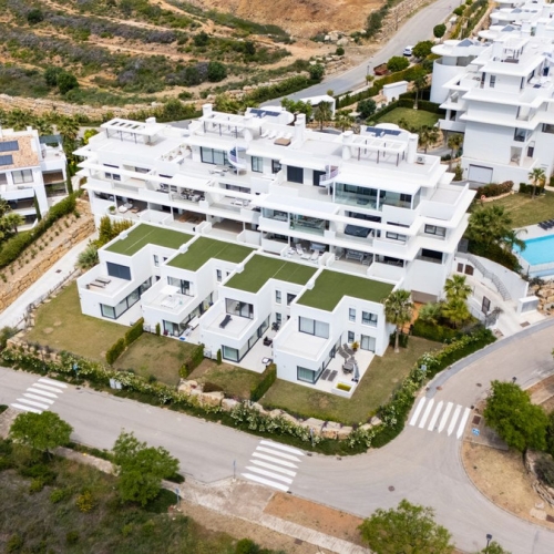 Den øverste etage har to soveværelser med eget badeværelse, herunder et rummeligt soveværelse med stort badeværelse med både separat badekar og brusekabine samt et dedikeret walk-in-garderobeområde. Hvert soveværelse har adgang til terrasser, der maksimerer lysindfaldet og udsigten.