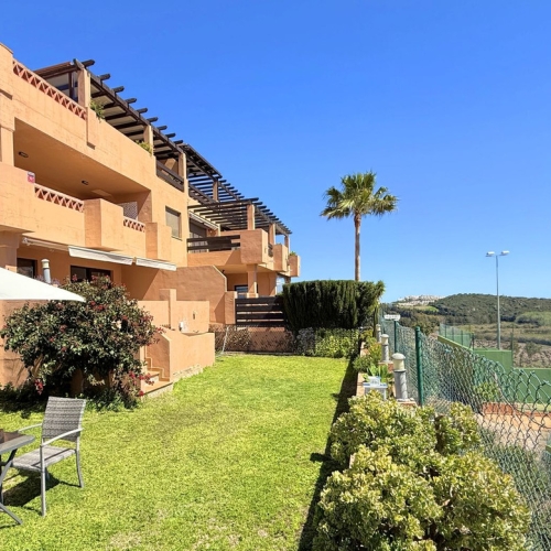 The gated community offers a swimming pool with sea views, as well as a gym and social area for residents.