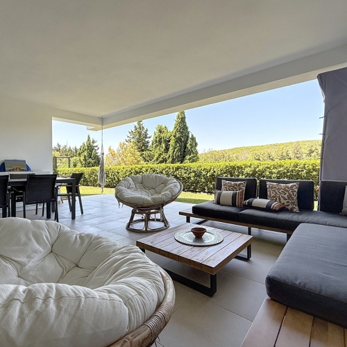 From the living room, there is direct access to a large private terrace with sea views — perfect for relaxing, dining outdoors, or simply enjoying the wonderful Mediterranean climate.