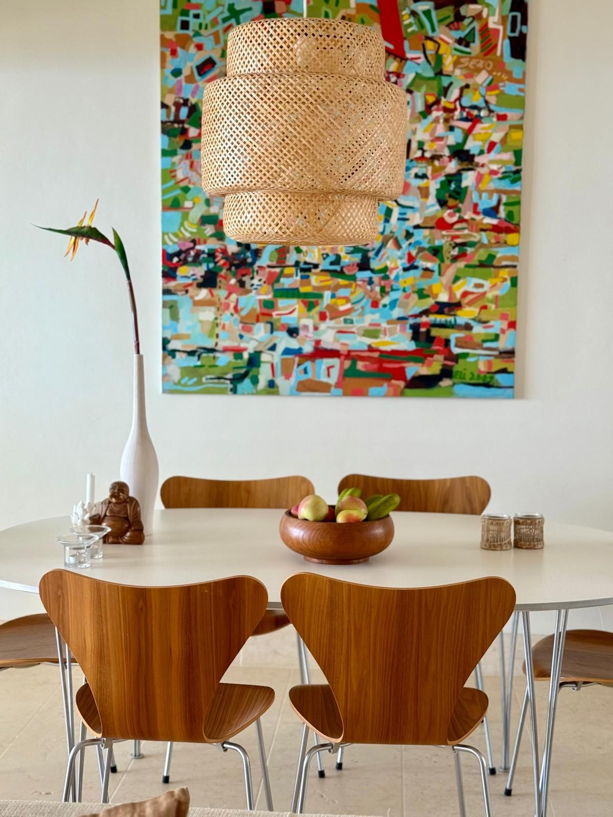 Indretningen er smagfuldt og tidløst udført med klassiske danske designmøbler, som understreger lejlighedens eksklusive og indbydende atmosfære. .