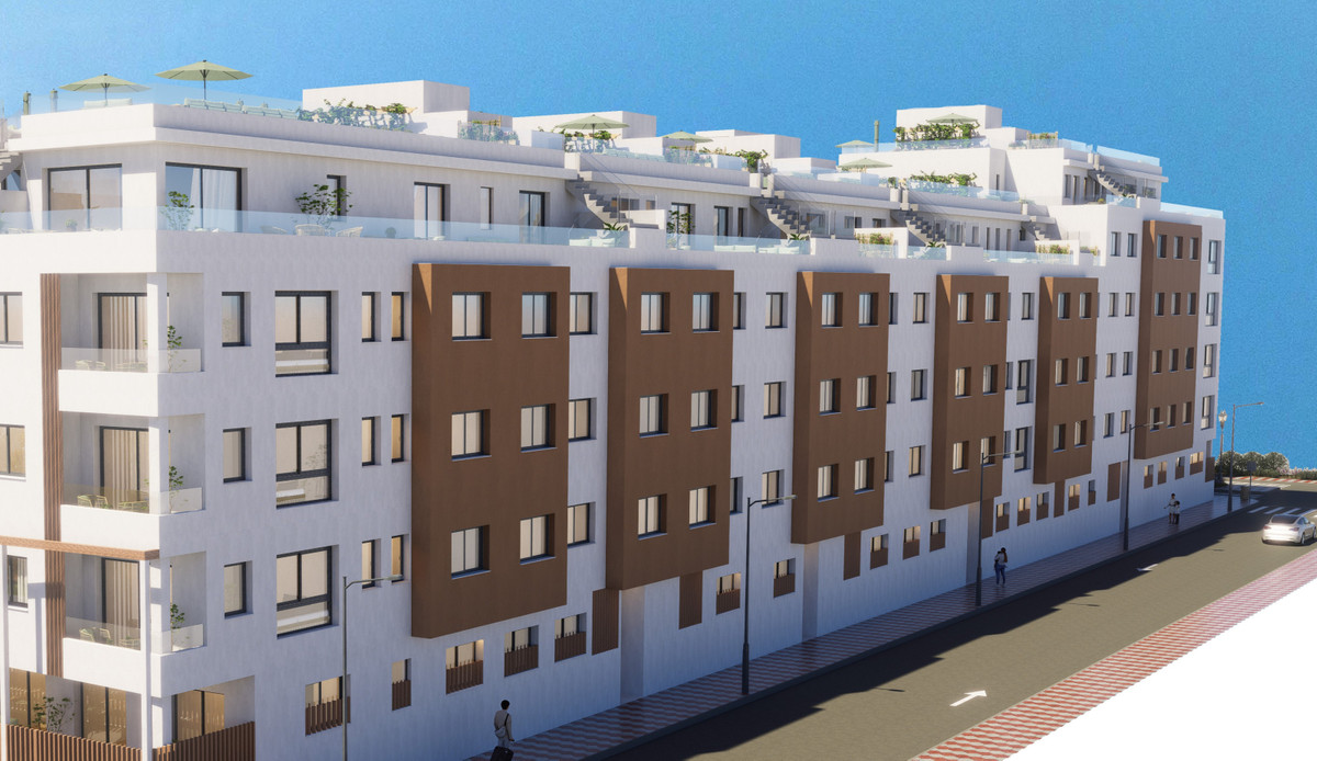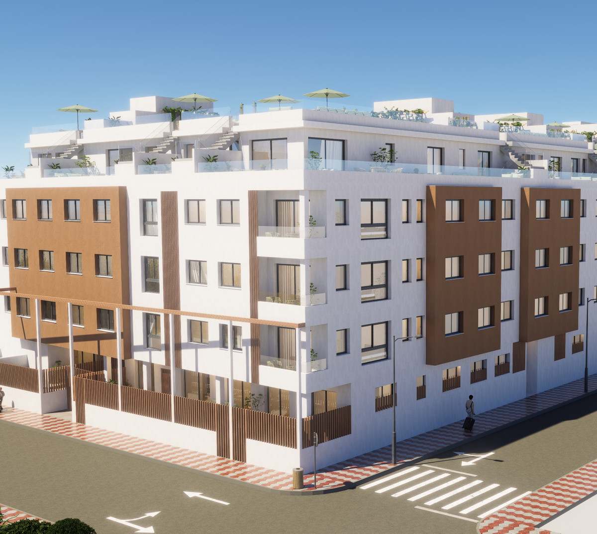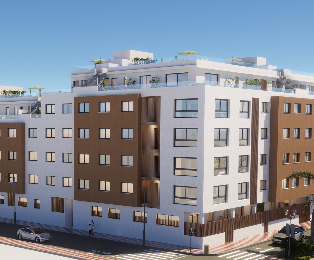Beliggende i Roquetas de Mar præsenterer komplekset sig som en moderne bygning med rene linjer og materialer af høj kvalitet, der kombinerer nutidig æstetik med holdbarhed.