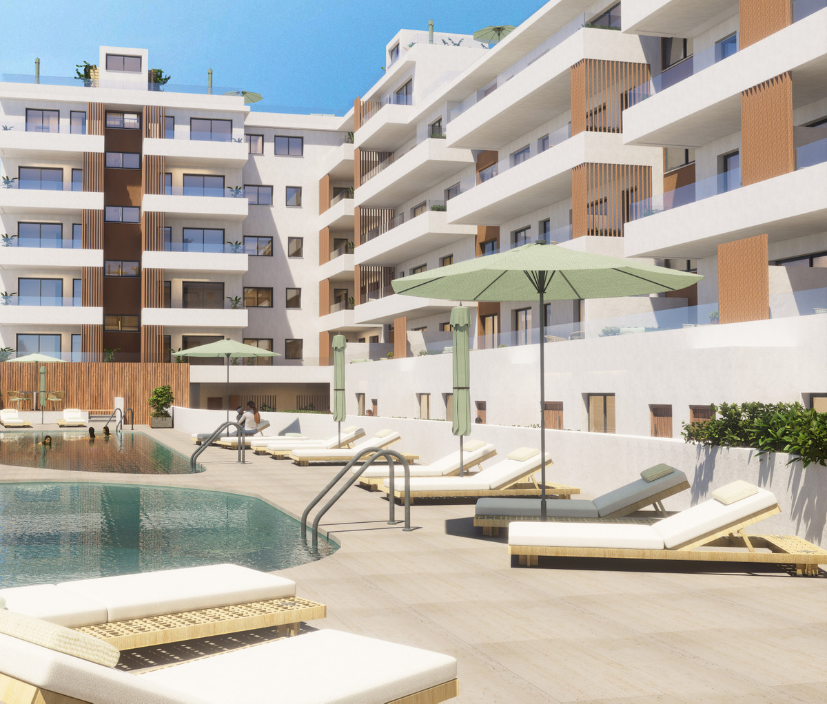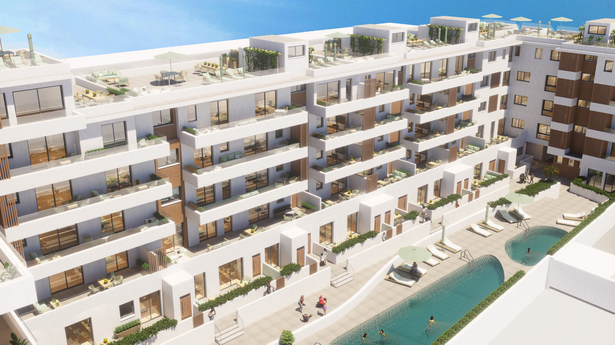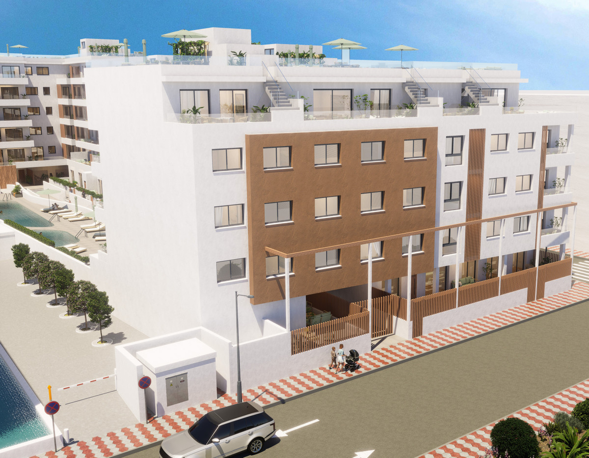 Beliggende i Roquetas de Mar præsenterer komplekset sig som en moderne bygning med rene linjer og materialer af høj kvalitet, der kombinerer nutidig æstetik med holdbarhed.