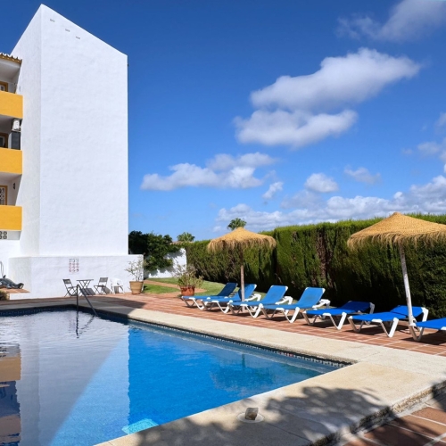 Truly beautifully refurbished apartment, with large terrace and fabulous sea views! Located within the heart of lower Riviera del Sol, just a short walk to local shops, bars and restaurants and only a 10 minute walk to the beach and public transport, this first class property needs to be seen to appreciate its quality and charm. The apartment comprises of a hallway, lounge/dining room with patio door access to a large south¨-east facing balcony overlooking the lovely gardens and pool area then out to sea. There are 2 double bedrooms with fitted wardrobes and a bathroom plus of course a modern fully fitted kitchen. In addition the property has a storeroom accessed via stairs or lift. The communal areas of the building are immaculately kept as are the gardens, which comprise of lawns, subtropical trees and plants and, of course, the fabulous swimming pool and separate pool for small children. The apartment has hot and cold air-conditioning throughout and the furniture is optional. For security, the community has 24 hour CCTV cameras. Perfect for holidays or all year round living. Also very reasonable community fees at just 83 euros per month.