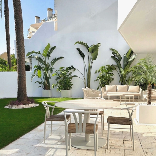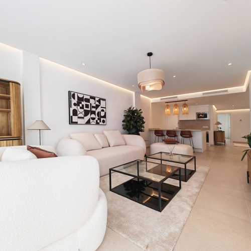 This stunning ground floor apartment, Apartment Aldea Blanca, offers a rent to buy opportunity with three bedrooms and three bathrooms, all beautifully renovated in 2025. The open plan living and dining area flows seamlessly to a fully fitted modern kitchen. Large glass doors lead out to two private terraces, one directly off the master bedroom, perfect for outdoor dining or relaxation.