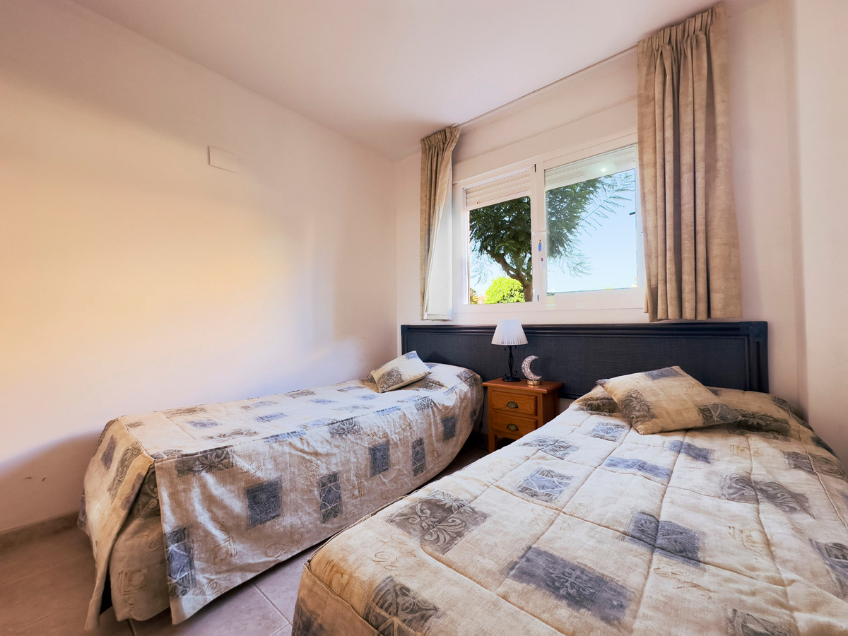 The 80 m² built and 70 m² interior home offers a functional and bright layout, with two bedrooms and two bathrooms, one of them en suite. The main living room opens onto a 15 m² private covered terrace, ideal for enjoying the Mediterranean climate and pleasant views of the communal garden. The fully equipped kitchen has a separate laundry room and practical built-in wardrobes. Its outstanding features include marble floors, air conditioning, access for people with reduced mobility, and fiber optic internet access. The property is in perfect condition and can be delivered furnished.