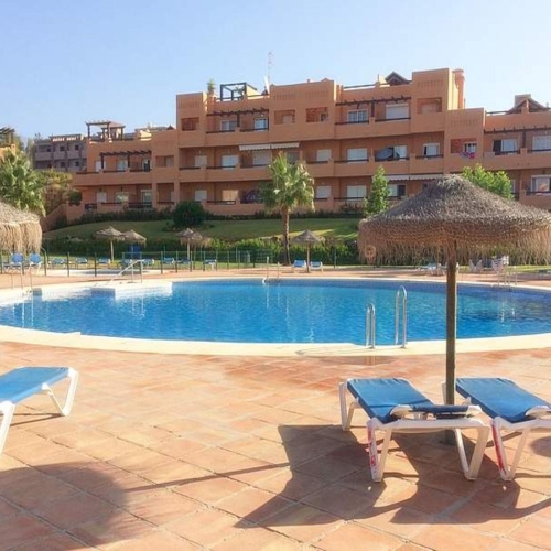 Set in the heart of a 9-hole golf course, this small and peaceful residential complex features three communal swimming pools and a padel court, perfect for leisure and relaxation.