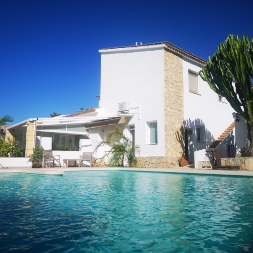 Located on a large plot less than five minutes from the center of Dénia, this beautiful rustic villa offers unparalleled views of the castle, the Mediterranean Sea, and the Montgó Natural Park. A privileged environment that combines tranquility, nature, and proximity to all services.