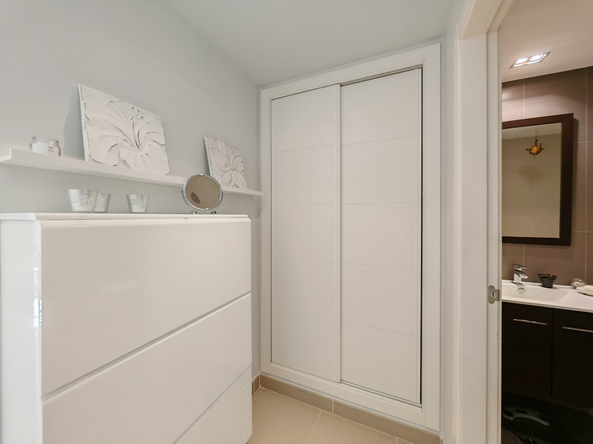 Apartment for sale in La Mairena, Marbella with 2 bedrooms, 2 bathrooms, 1 on suite bathroom and with orientation south, with communal swimming pool, private garage (1 parking spaces) and communal garden. Regarding property dimensions, it has 93.75 m² built and 29.65 m² terrace. Has the following facilities mountainside, air conditioning, fully furnished, fully fitted kitchen, utility room, gym, security entrance, double glazing, video entrance, private terrace, water tank, sea view, country view, mountain view, golf view, internet - wi-fi, covered terrace, fitted wardrobes, gated community, lift, garden view, panoramic view, uncovered terrace, balcony, spa, wheelchair-accessible and excellent condition.