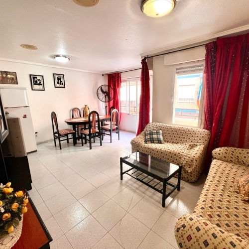 Exclusive fully renovated apartment for sale on the front line of the sea, located in one of the most prestigious areas of Torrevieja — Punta Prima.• Total area: 92 m²• Usable area: 80 m²• Distribution: 2 bedrooms and 1 bathroom• Floor: second• Terrace: 8 m² with sea views, the landscaped area, and the poolThe property has been completely renovated with high-quality materials: stretched ceilings, modern lighting, and elegant finishes.It is sold furnished and equipped with appliances and decorative elements, as shown in the photographs — ready to move in.From the terrace, you can enjoy spectacular views of the sea, the garden area, and the residential complex's pool.The complex has a communal pool and well-maintained common areas.An ideal property for those looking for a home by the sea, with a modern style and all the necessary comfort to live or enjoy vacations.