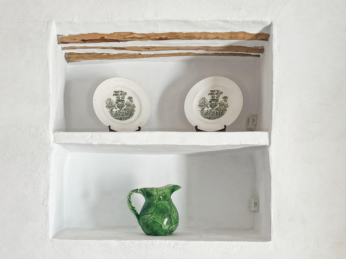 The property offers two generously sized double bedrooms with wooden blinds and mosquito nets, accessed via a hallway with high ceilings. The property is in perfect condition and finished with high-quality materials, with careful preservation of original rustic features. The property benefits from mains water and electricity connections, plus a 300L solar hot water tank for energy efficiency. Set on a 102m² plot with a front terrace offering beautiful countryside views and a practical storage shed.
