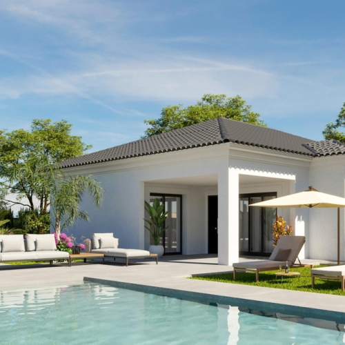 Villaen har 3 rummelige soveværelser med indbyggede skabe, 2 moderne badeværelser designet med stil og funktionalitet, samt lyse åbne opholdsrum med et moderne udtryk. Forinstalleret aircondition (varm/kold) sikrer komfort året rundt.