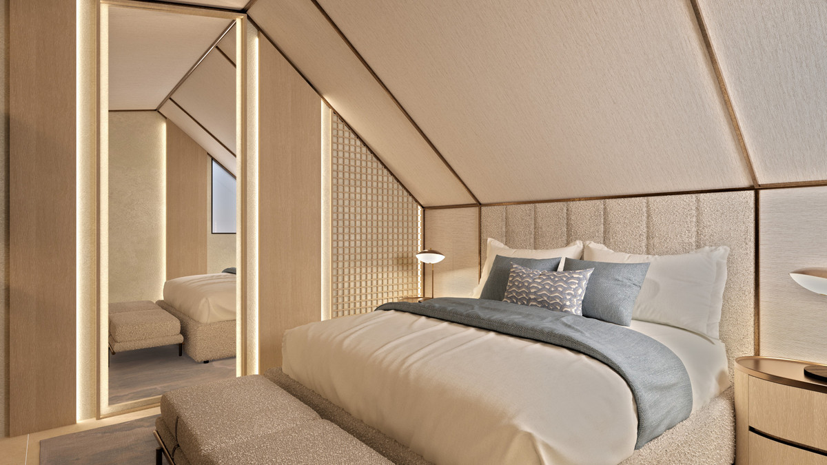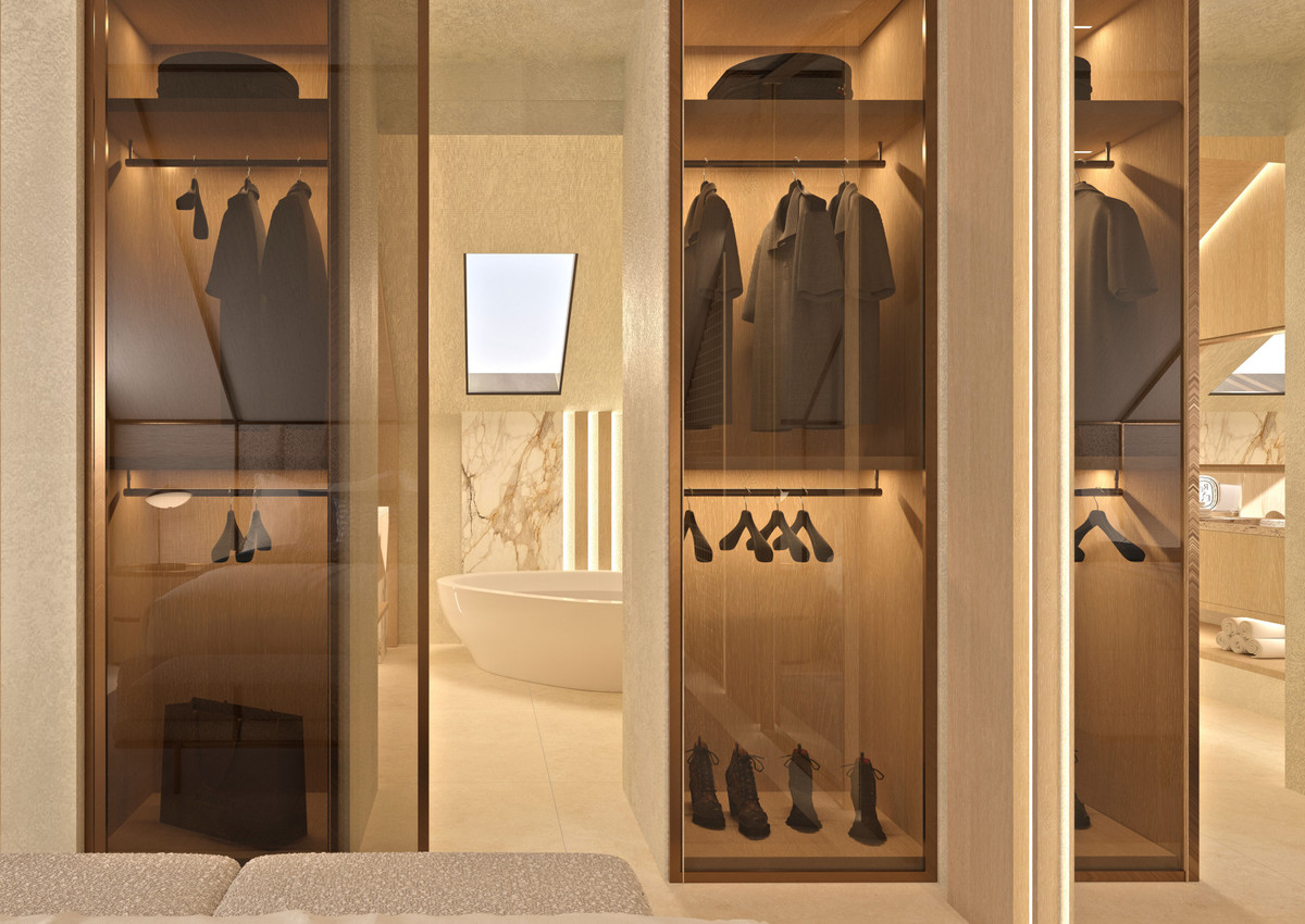 Each suite combines functionality with comfort, featuring both shower and bathtub options. A private terrace of 21 m² extends the living space outdoors, perfect for morning coffee or relaxed evening dining, while the upper floor boasts panoramic views of the iconic La Concha mountain.