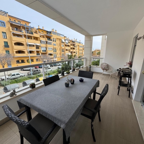 This elegant three-bedroom apartment is ideally located within a highly sought-after gated development just 350 metres (a 4 minute walk) from the beach in San Pedro de Alcantara. This spacious property sits opposite the NAC Padel Club and exclusive I/O Gym and is surrounded by stunning tropical gardens with a large free-form swimming pool. Positioned on the first floor, the property enjoys a dual aspect and a spacious south-facing terrace, perfect for outdoor dining. The layout briefly includes an entrance hall, a bright living and dining area, a fully fitted kitchen with an enormous, separate utility room, and a guest toilet. There are three bedrooms in total, two of which feature en-suite bathrooms, plus a third slightly smaller bedroom, and the kitchen also benefits from a Juliet balcony overlooking the stunning community swimming pool.