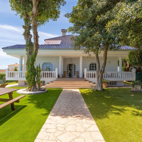 Located in the peaceful urbanisation of Jardin del Mar, tucked away in a quiet cul-de-sac, this charming quad house combines comfort with a warm, homely feel. The plot is fully gated with an electric entrance and offers a covered parking space, a large terrace at the front and along the side of the house. At the entrance, an orange and lemon tree add a touch of Mediterranean character.