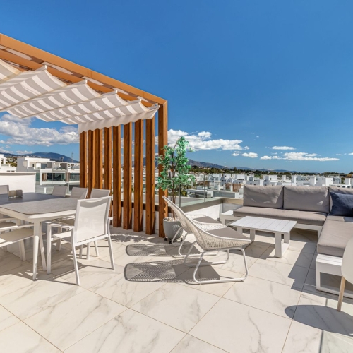 The location of this penthouse is ideal for those seeking proximity to various amenities. It is just a 5-minute walk to the charming town of Cancelada, which offers a variety of restaurants and services. The beach and the prestigious Anantara Hotel Villa Padierna, along with the three golf courses of Los Flamingos, are also within walking distance.