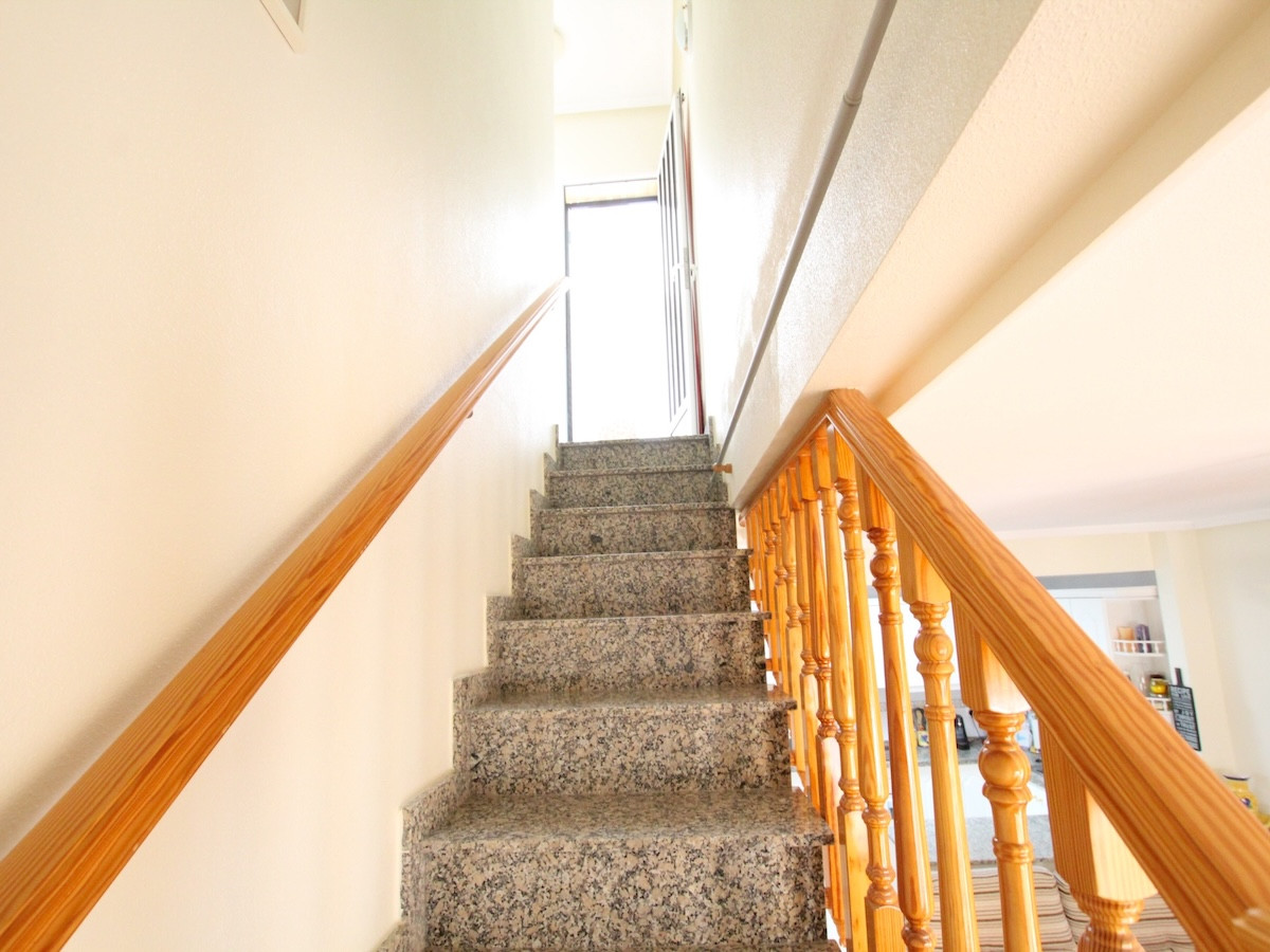 An elegant staircase leads you to the first floor, where the main bedroom and a shower room are located.