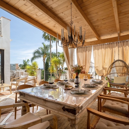 Discover this charming townhouse in Los Naranjos, Marbella! With a built area of 141 m², this home stands out for its brightness and excellent layout. The spacious living-dining room with a fireplace is perfect for enjoying cozy family moments. The independent kitchen offers a functional space for cooking enthusiasts. With 3 bedrooms and 3 full bathrooms, every corner is designed to provide comfort and privacy.